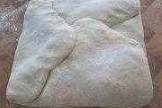 6、取出面片,搟成黃油的兩倍大小,將黃油片放在面片中間。