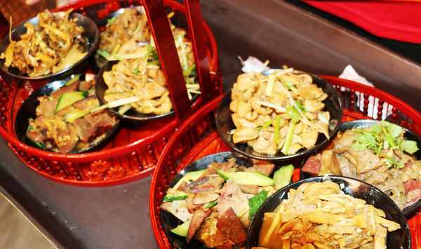 你還記得兒時農村坐大席的肉碟嗎?“沂蒙四肉碟”傳承民間老席制作技藝,采用豬腸、豬肝、豬肺、豬肚,配以老式芥末面、香油薑末、蒜泥、蔥絲香菜等,一碟一特色,碟碟味不同。