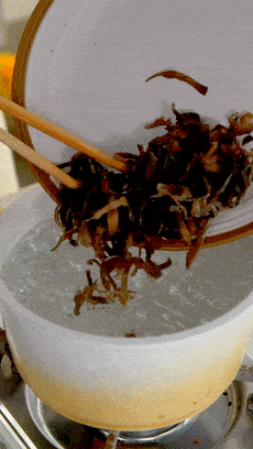 木耳絲焯水撈出,如果你還有想要加進去的食材,這裡可以一起處理好備用。