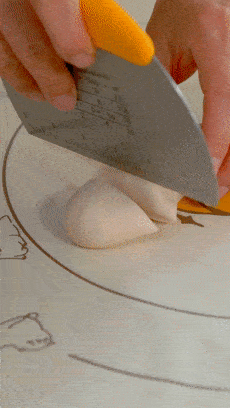 發酵好的面團直接取出來,揉搓排氣,搓成條狀方便之後切割。