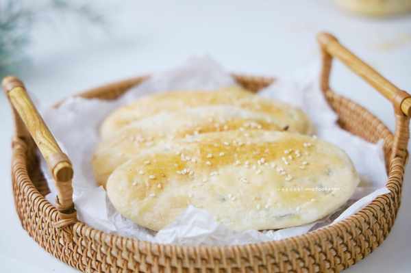 9.放入烤盤,烤箱預熱180度,預熱好後放入烤箱,烤20~25分鐘。烤好的餅表面是微微發黃的,等涼透層次特別明顯。