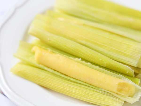 1.玉米用刀切掉根部,把玉米葉子一片一片剝離下來,放到清水裡清洗幹凈晾幹水分備用