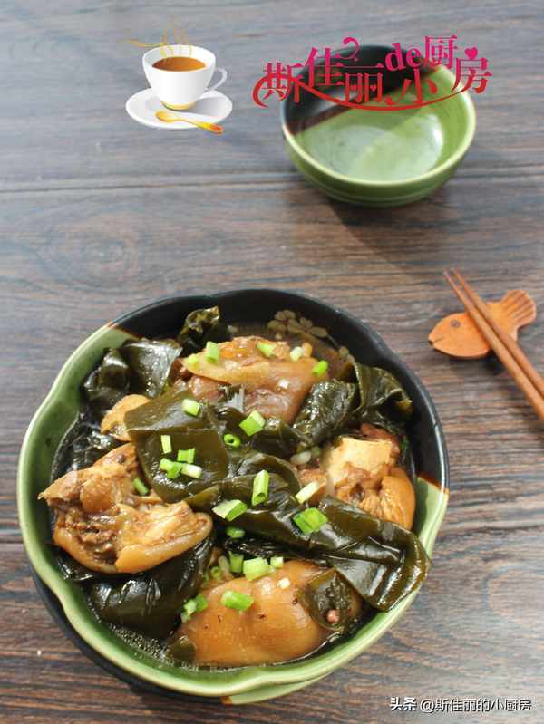 海帶是生活中很常見的食材, 有著“長壽菜”的美譽, 也是一種堿性食材, 海帶的經濟實惠,營養極其豐富, 平時我傢常會囤上一些海帶幹貨在傢, 吃時直接拿出來一塊浸泡好再燒、炒、拌、煲等,方便又省事。 豬蹄和海帶是絕配,簡單燉煮一下就鮮香味美,葷素搭配,豬蹄香而不膩,海帶綿軟爽滑,吃上一口全都是膠原蛋白,女人想老得慢一點常吃這菜,每周一次補膠原蛋白抗衰老頭發烏黑,肌膚水水嫩嫩, 愛美的女性千萬不要錯過。這菜女人吃尤其好瞭,每周吃一兩次補膠原蛋白延緩衰老,好吃還不貴。 下面就來看看這菜的具體做法吧, 喜歡的朋友也試試吧。