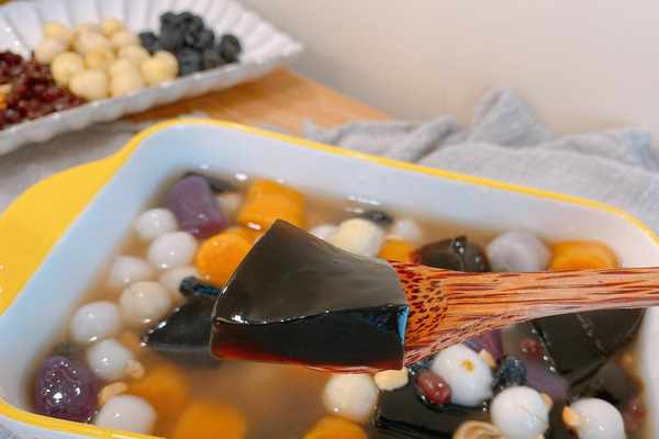 2、龜苓膏粉要先做成龜苓膏,50g龜苓膏粉先用100g清水稀釋,把它攪拌成糊狀,鍋中加入1000g清水,100g冰糖,大火煮開,把白糖煮化,然後加入攪成糊狀的龜苓膏粉,邊倒邊攪拌,再次把鍋中的龜苓膏糊糊煮沸,倒在容器中晾涼,等它凝固,這個份量的龜苓膏是比較多的,龜苓膏除瞭搭配芋圓,也可以直接吃或者加點牛奶;