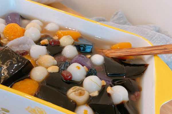 今天做的這款甜品其中用到的就是龜苓膏,龜苓膏在江浙一帶也是很常見很受歡迎的,除瞭用到龜苓膏,主角還算有芋圓、小圓子,配角是黑加侖幹、蓮子、蜜紅豆、花生碎,調味用的是桂花蜜,這些原料都不是固定的,可以根據自己的喜好調整,很多朋友調味喜歡用紅糖水,這也是不錯的選擇,做好的飲品清熱降火還有解暑的功效,做一次夠一傢人吃,喜歡的朋友可以試試!