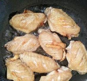 油不用太多,更不用沒過雞翅,將雞翅的一面煎好然後在煎另外一面!