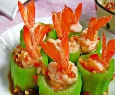 做法:1.絲瓜切成小段,用小刀挖掉一部分瓤,做成絲瓜盅。2.將基圍蝦剪去頭挑去沙線,剝去蝦身上的殼並保留尾部末端那一小節,再將背部剪開一個洞,將蝦尾塞入洞中露出尾部做成蝦球。3.將做好的蝦球塞在挖好的絲瓜盅裡。4.剁椒裡加入蒜泥、蒸魚豉油、糖、食用油拌勻。5.蒸鍋裡水沸騰後,將絲瓜蝦盅和調味料一同上鍋蒸,大火3--5分鐘關火,再燜1分鐘即可出鍋,最後將蒸好的調料淋在絲瓜蝦盅上即可。