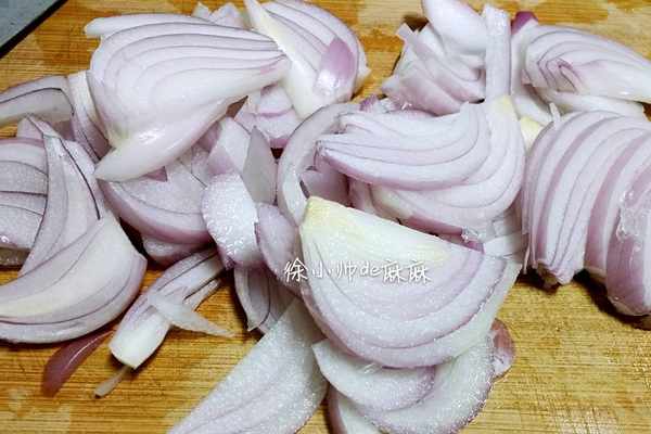 1、洋蔥兩個,切掉兩頭,去掉最外面的一層洋蔥,然後洗凈切片。雞蛋兩個打開攪散。