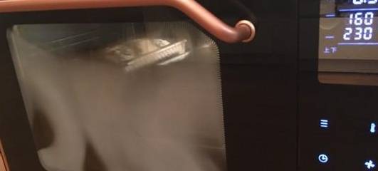 9.上火160下火230預熱烤箱同時放一盤水制造足量蒸汽烘烤到第8分鐘撤走蒸汽共烘烤32分鐘