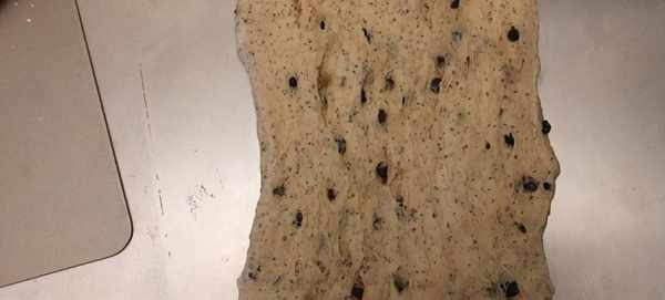 8.攤開排氣卷起入模30度75濕度發酵約90分鐘撒黑麥粉割包