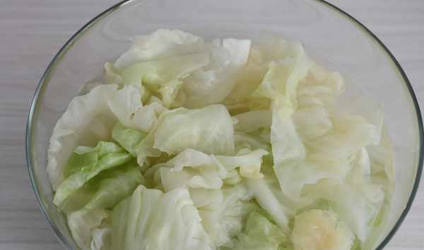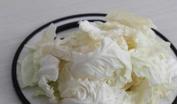 1包菜切掉硬心,撕成小片,沖洗幹凈。