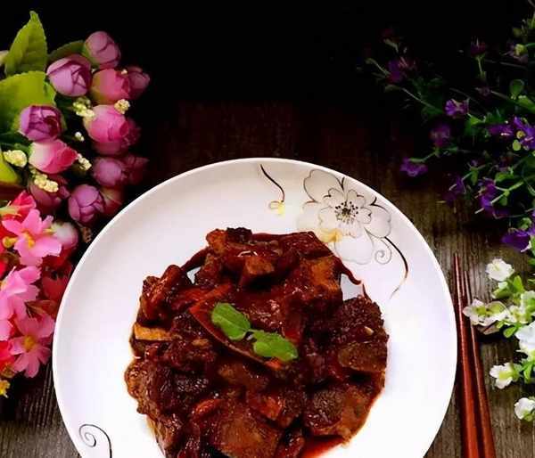 4、將腩排取出放入香檳醬中,小火燜煮至醬料均勻包裹腩排即可;