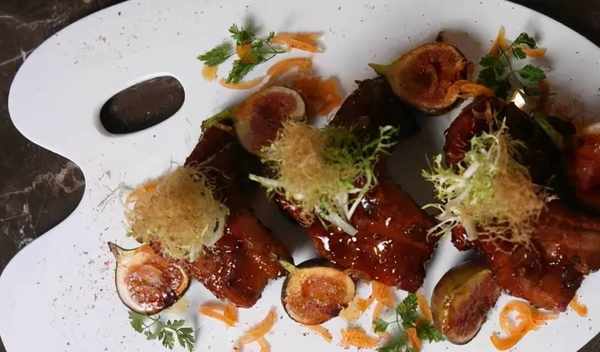 京都腩排300克、鮮橙肉150克、黃捲菜10克、新鮮無花果6克、芙蓉金棗5克