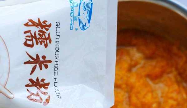 3、然後再分多次加入糯米粉,玉米淀粉。,