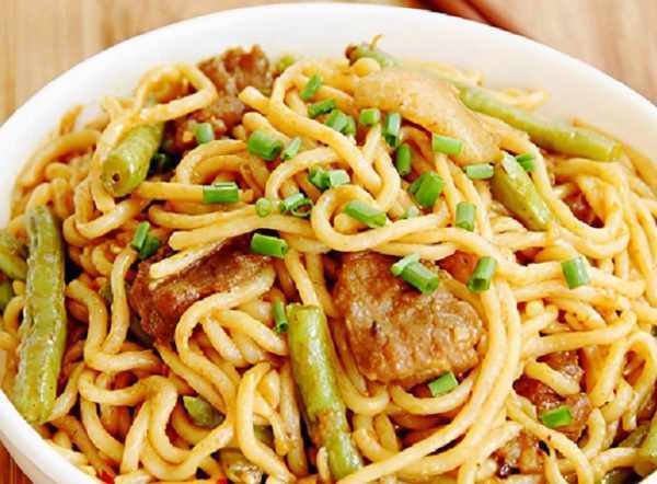 豆角燜面,先把五花肉洗一下,然後切成薄片,豆角處理一下切段。將五花肉放到鍋裡面,開火炒出油,把蔥薑蒜末加進去煸炒出香味,豆角段下進去,再加入少許的食用鹽,醬油,翻炒均勻然後開始加入清水,隻要把稍稍沒過豆角就行瞭,把準備好的面條鋪在豆角上。然後蓋上鍋蓋開始燜,一般隻要10分鐘左右就可以瞭。開蓋把面條和豆角攪拌均勻,再撒上蔥末。