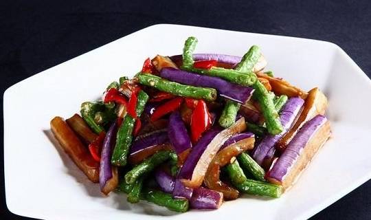 茄子豆角,茄子仔細地洗幹凈後切成條,豆角去掉蒂洗幹凈切成小段。往鍋裡面多加一些的油,燒熱以後把茄子條倒進去炸到外表變硬以後撈出來控油,再把豆角段倒進去炸到表面變皺以後撈出來控油。鍋裡面留下一些底油,把蔥薑蒜末倒進去煸炒出香味,然後把炸好的茄子條和豆角段倒進去,加入適量的食用鹽,少許的醬油,蠔油再加入半碗水淀粉翻炒均勻,收掉多餘的湯汁就可以出鍋瞭。