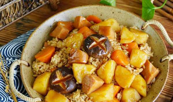 燜飯沒有固定的食材,配料不同味道也有所區別,海鮮做出來的燜飯鮮美無比,排骨做出來的燜飯鮮香可口,臘肉做出來的燜飯濃鬱鮮香,即使再熱的天也能讓人很有食欲,大米吸收瞭菜和肉的香氣後,每一粒米都變得飽滿入味,讓人越吃越想吃,分享一道我傢夏天常吃的土豆燜飯,綿軟的土豆,澄黃的胡蘿卜,滑嫩的香菇,再搭配鮮嫩的肉塊,打開鍋蓋的瞬間滿屋飄香,簡單省事又好吃,推薦給大傢試試看。