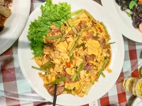 許巖一傢看菜譜上的這道芹菜炒粉感覺也算是比較素,所以又點瞭一盤這菜,不過上桌以後有些失望,這菜裡芹菜就沒有幾根,反而是雞蛋、肉末和粉條居多。