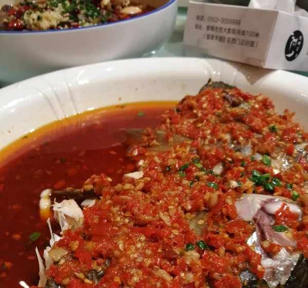 菜品等瞭40多分鐘才上桌,第一道菜品是剁椒魚頭,魚肉根本就沒入味,味道感覺很差,朋友表示難吃。