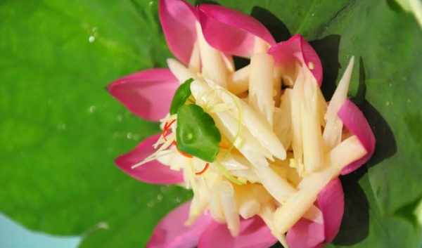按老濟南的做法,炸荷花要選用蕾花初綻的花骨朵,把外層的花瓣剝掉,隻留內層嫩蕾,打一桶泉水上來輕輕洗凈。