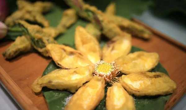 “吃荷”首推的名吃就是炸荷花。其起源於何時已不可知,上世紀30年代老舍在濟南教書時,就寫過散文《炸蓮花》。