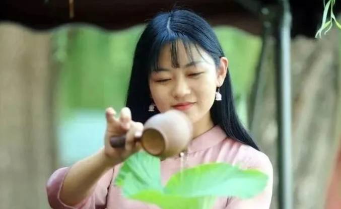 三、碧筒飲據考證,碧筒飲酒最早始於魏晉。唐代段成式《酉陽雜俎·酒食》,寫瞭一則魏晉的雅事:歷城北有使君林,魏正始中,鄭公愨三伏之際,每率賓僚避暑於此。取大蓮葉置硯格上,盛酒三升,以簪刺葉,令與柄通,屈莖上輪菌如象鼻,吸之,名為碧筒杯。蘇東坡詩雲:“碧筒時作象鼻彎,白酒微帶荷心苦。”到唐代,碧筒飲已經是文人雅士流行的消夏方式瞭,唐代趙璘《因話錄》記載:“暑月臨水,以荷為杯,滿酌、密系,持近人口,以筋刺之。不盡,則重飲。”在荷葉杯中倒滿酒,如果沒能一飲而盡,就要再飲一杯。宋朝時,發源於大明湖畔的碧筒飲傳到南方,成為尋常百姓的消夏方式的不二之選,極富詩情畫意。