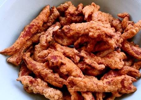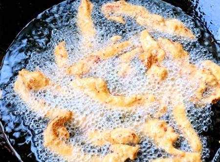 鍋中倒入玉米油,加熱燒制7-8成熱時放入雞柳。