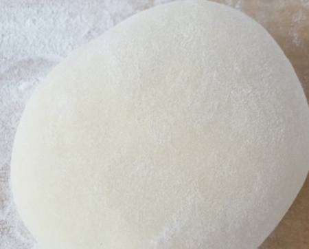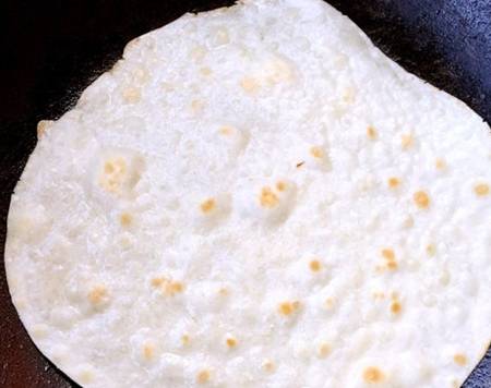 小面團搟成圓形薄面皮,用不粘鍋煎至兩面金黃。