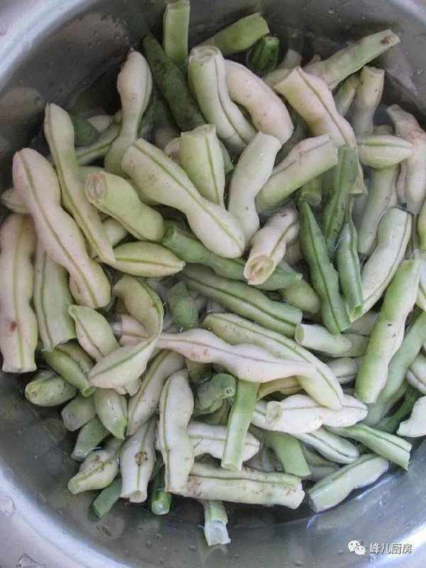 1、自傢種的蕓豆不打藥,不施化肥,長出來的大小不一,樣子看起來很老,一點都不英俊瀟灑,實際上很嫩。蕓豆洗凈摘去兩頭筋,用水掰成小段。