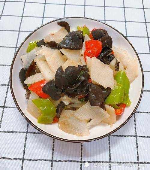 ②木耳提前加溫水浸泡,泡發後去掉根部,清洗幹凈,撕成小朵。青紅椒清洗幹凈,去掉辣椒蒂,再切成小塊。大蒜切片待用。