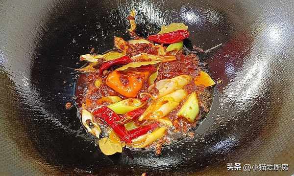 【制作主料】:生薑1塊、大蔥1節、豆瓣醬1勺、火鍋調料1塊、花椒小半把、大料1個、桂皮1塊、香葉幾片、幹辣椒5-6個、冰糖十幾粒、生抽1炒勺、老抽1小勺、鹽1勺、雞精1勺