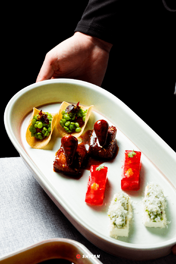 主打新式川菜的「食川非川」,是甬府集團旗下的全新品牌,也是米其林星級餐廳,首店落在深圳。它在川菜的基礎上進行瞭改良,但創新不忘本,在這裡既能品嘗到高水準的傳統川菜,又能感受到新派川菜的巧思。“食川”譯為天府之國的川菜,“是川?非川!”