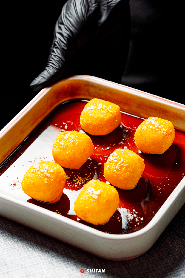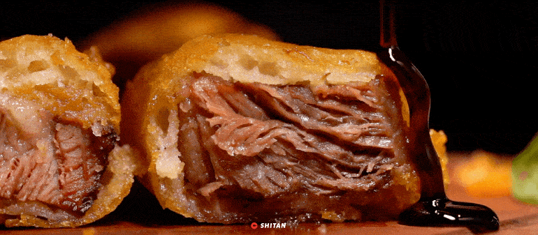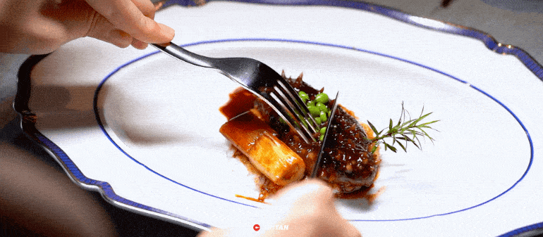 用“酥、韌、鮮、香”來形容這道菜再合適不過瞭,經過秘制醬料的醃制,牛排既保留瞭原生態的肉香也被附上基礎底味,外部的酥皮正好可以封鎖住瞭牛肉的鮮嫩,再蘸上意大利黑醋汁,又是另一種風味。