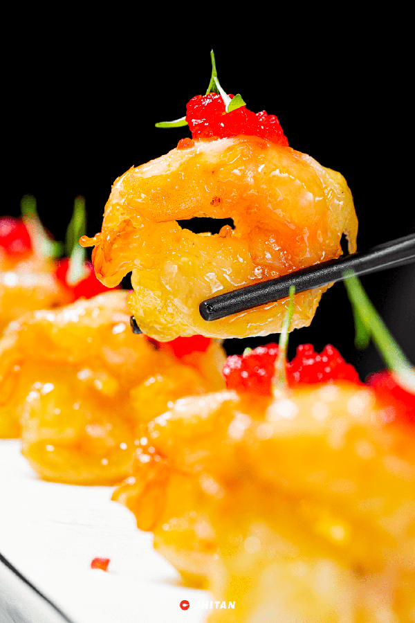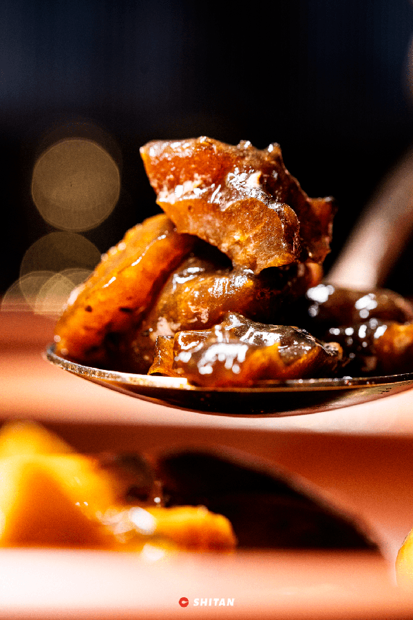 這道菜的靈感是來自清代詩人袁枚的《隨園食單》,“梨”與“蝦”,看似兩樣不合味的食材,卻能碰撞出獨特的味道。雪梨的清甜感將黑虎蝦層層包裹著,脆嫩彈牙,香味馥鬱。