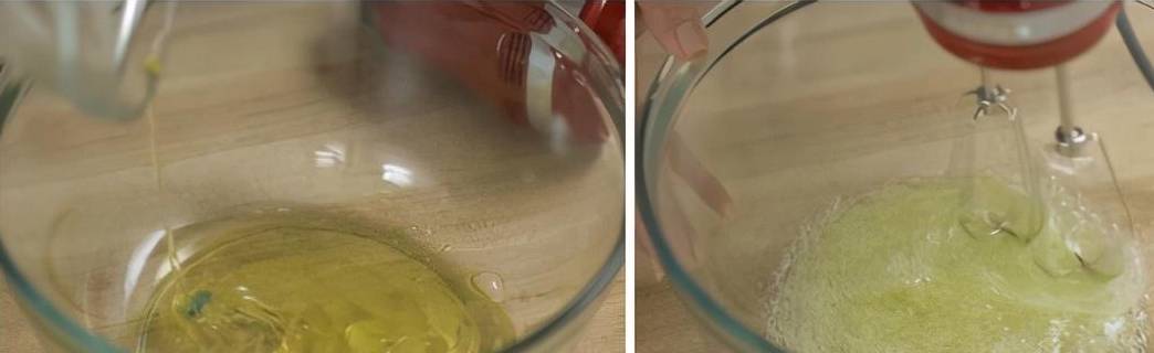 8.將1/3的蛋清和蛋黃混合物混合均勻。