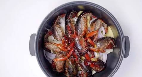把食材放入電飯煲之後,直接按煮飯鍵,約40分鐘左右,就可以瞭,在這個期間要註意攪拌兩次。煮熟之後,把小龍蝦拿出來擺盤就完成瞭。