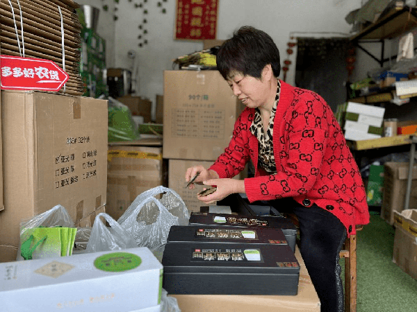 在雅安名山,90%以上的農戶在種茶,75%的人在從事茶產業相關的工作。“清明前後會比較忙一些。”拼多多商傢李帥的媽媽是名山人,一直在當地種茶、采茶。近幾年,隨著兒子李帥返鄉二次創業,她逐漸承擔起瞭打包、發貨等工作。