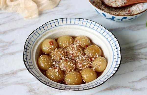 糯米丸子盛到碗裡,撒上一些加瞭白砂糖和椰蓉的芝麻花生碎,一碗Q彈好吃的糖不甩就做好瞭。七夕將至,給愛人做一道中式傳統甜品,寓意甜甜蜜蜜,比湯圓還省事。七夕情人節,用糯米粉做傳統甜品,香甜Q彈,比湯圓好吃又好做。