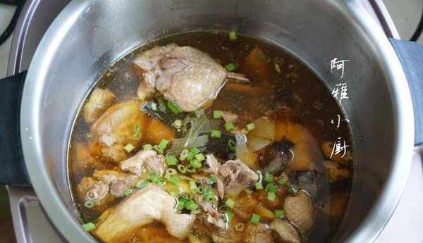 7.啤酒老鴨湯就煮好瞭,撒點蔥花就可以盛出來喝啦。