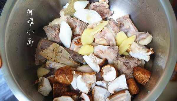 【所需食材】老鴨半隻,薑片,蔥段,八角,桂皮,香葉,香菇