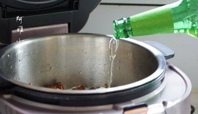5.加入一瓶啤酒,沒過鴨肉,用啤酒燉的鴨肉一點也不會腥氣,不喜歡用啤酒也可以用清水代替。