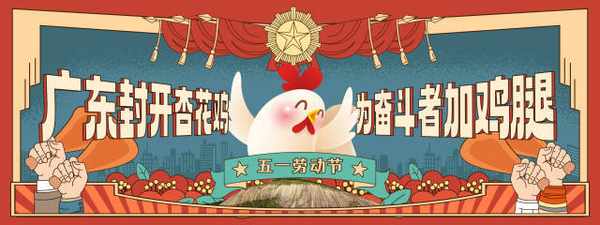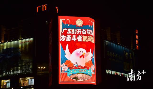 嶺南金鳳凰,飛赴羊城慶五一。“五一”勞動節期間,“廣東三大名雞”之一的封開杏花雞亮相廣州兩大地標大屏,“廣東封開杏花雞,為奮鬥者加雞腿”口號在廣州市天河路的太古匯和廣百百貨的大屏幕上滾動輪播。