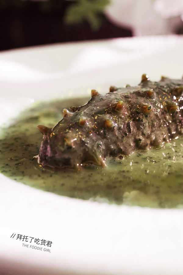 關東參淋上春季田間的野生薺菜、大別山春筍,巧妙地將田園的新鮮與海洋的滋補相結合,口感嫩滑,如春雨? 般滋潤。