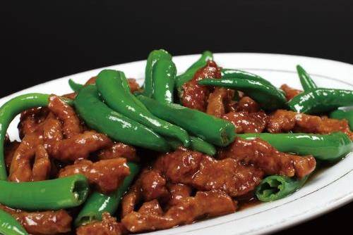 杭椒牛柳:蒜切片,杭椒切成三段,準備少許洋蔥。肉逆紋理切條。加1瓷勺料酒、2勺生抽、 2勺生粉、1勺油拌勻,醃制15分鐘左右。鍋裡下2-3勺油,熱瞭下牛肉條。炒到變色盛出備用。用鍋裡餘油繼續炒薑片蒜片,炒香後下蔥頭或者洋蔥繼續翻炒出香味。入杭椒煸炒,可以加3勺水。炒到香味都出來。下剛才炒過的牛肉和紅辣椒翻炒均勻,再倒入老抽半勺,白糖2勺,鹽半勺蠔油1勺,黑胡椒粉半勺翻炒調味。