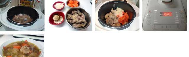 4蓋上鍋蓋並上鎖,選擇「煲湯」模式,按「開始烹飪」,料理完成,提示音響起,泄壓完成,即完成。