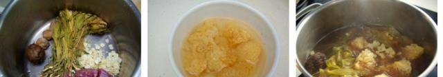 4把浸好的雪耳放入煲中以大火煲15分鐘,下鹽調味,趁熱飲。