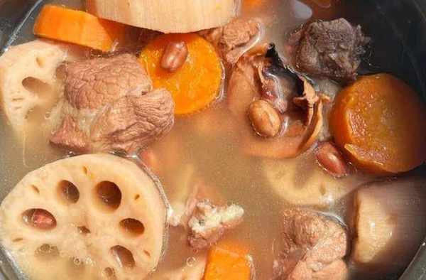 蓮藕,胡蘿卜,花生,豬骨,墨魚,薑片。