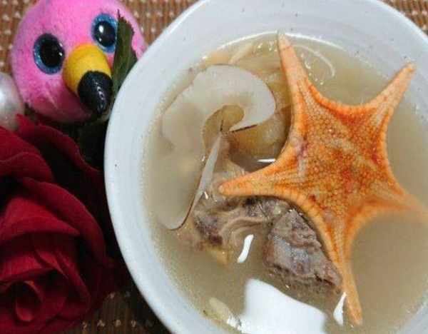 【食材】:海星2隻、椰片2兩、雪梨幹10-15片、椰棗3粒、生、熟薏米少許、南、北杏少許、蘋果1個、鮮百合2顆、西施骨1斤、水5公升