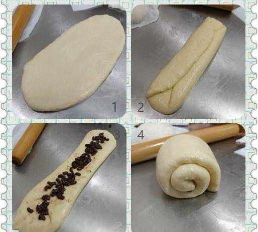 撒上醃制好的蜜紅豆,從上向下卷卷,不要卷得太緊影響後期的發酵哦!