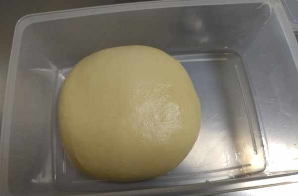 面團揉出手套膜,測面溫25℃(小於26℃)。放入保鮮盒冷藏靜置一個晚上(約12h)。